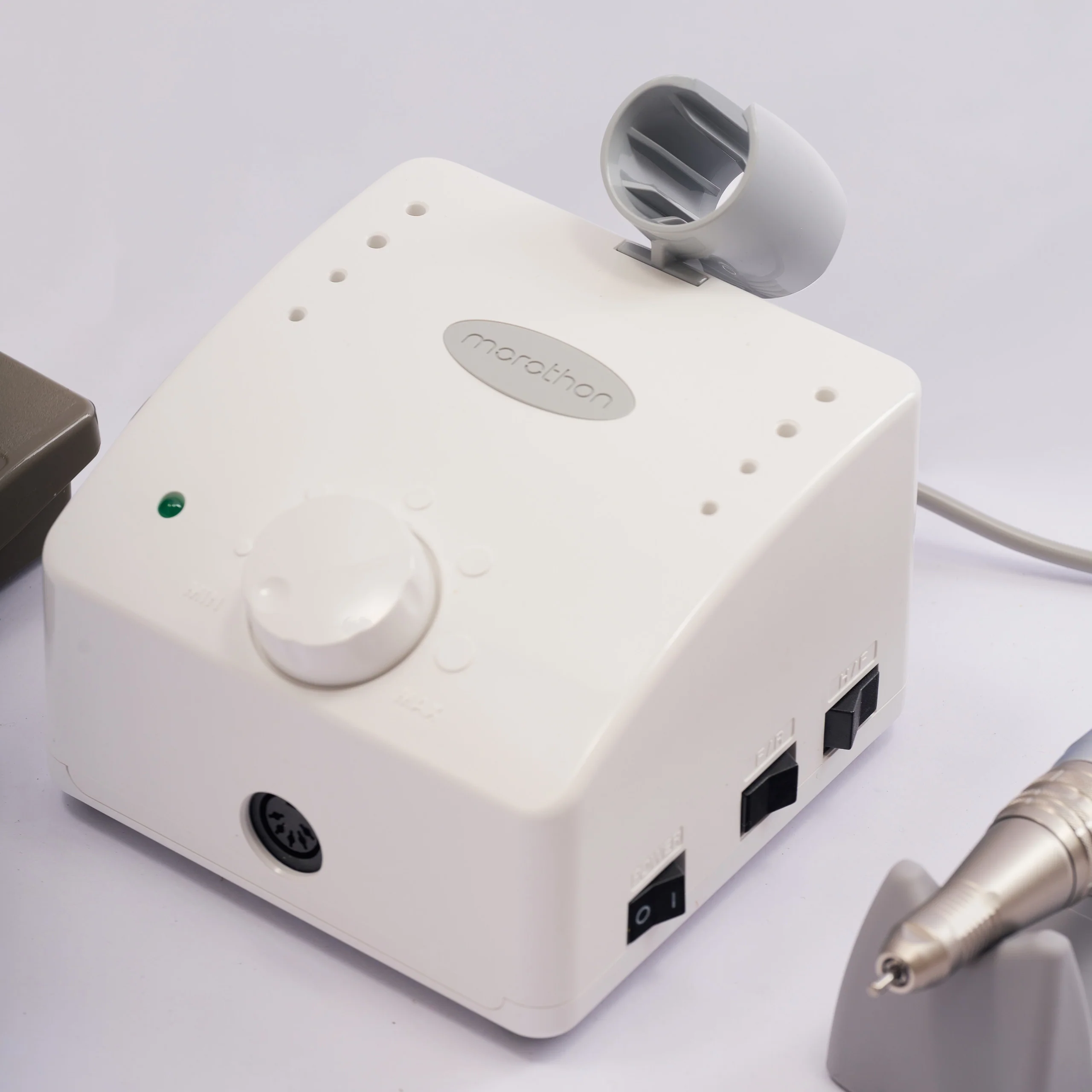 Un dispositivo profesional para manicura, pedicura y corrección de uñas .Micromotor potencia 45W y velocidad de giro de 30000 rpm, reversible.